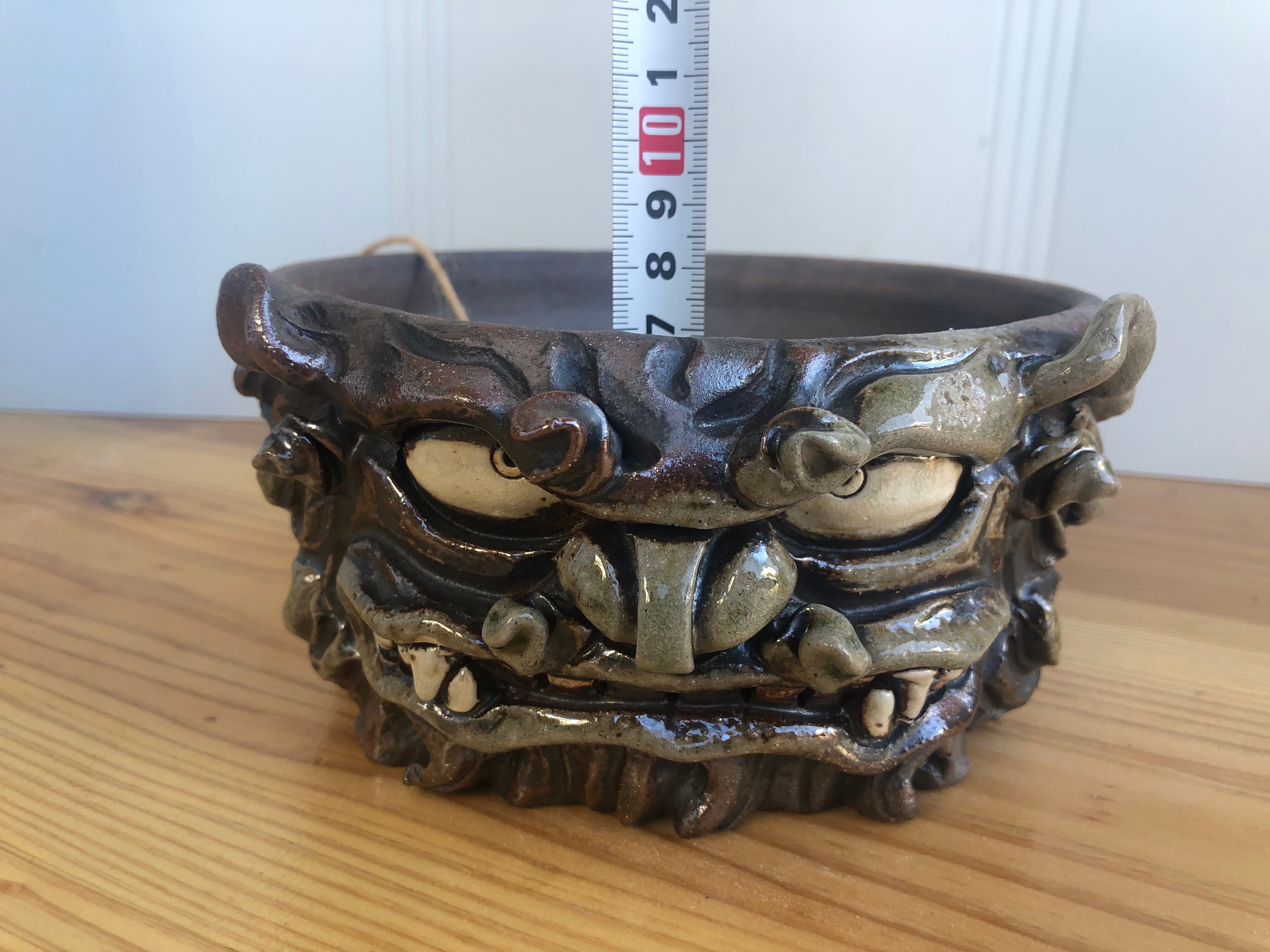 鉢のサイズは内径 約16cm・深さ 約7cm。植物を植えると、まるでシーサーが見守っているかのような佇まいになります。