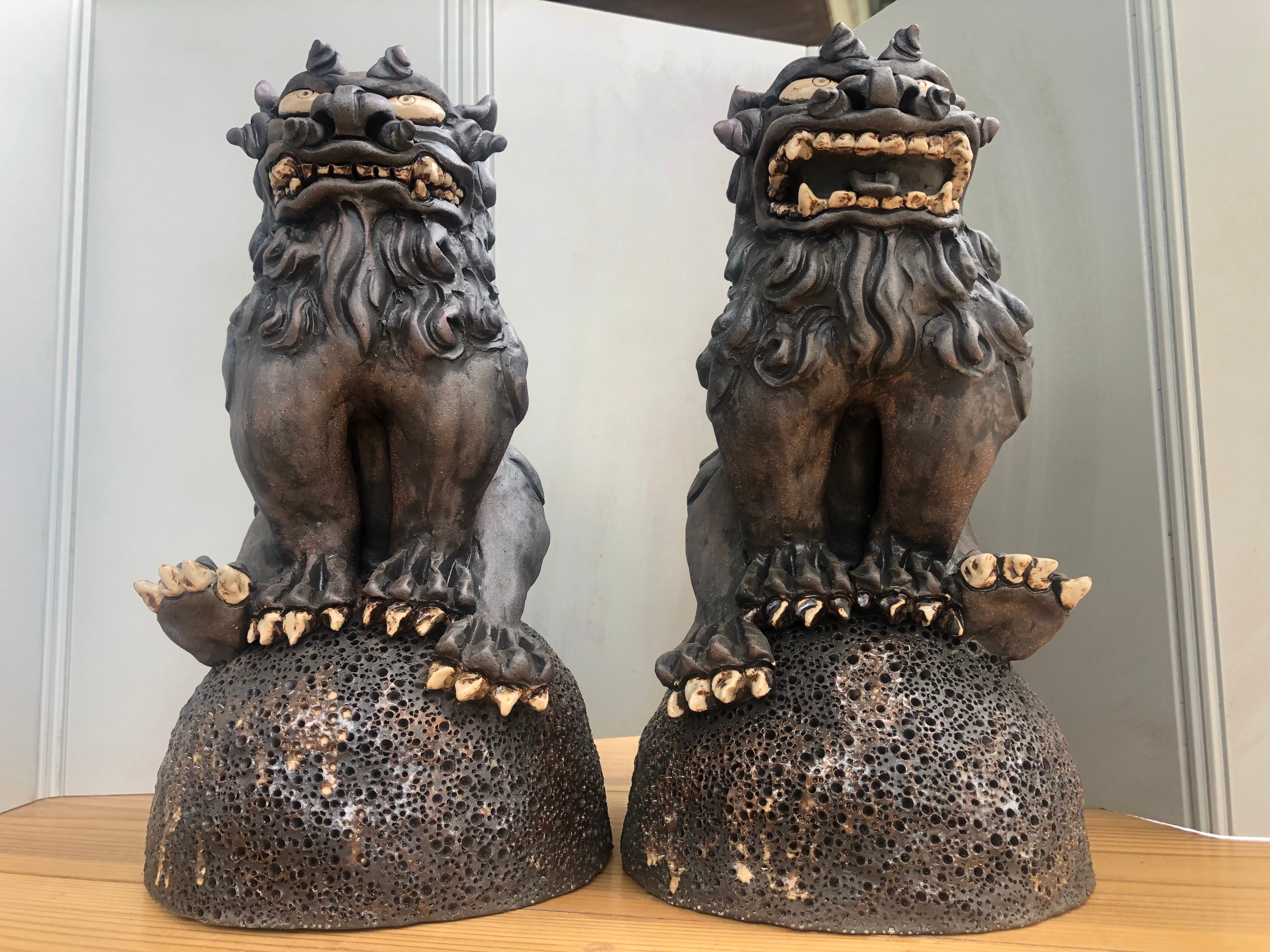 口を開けたオス(福を呼び込む)と、口を閉じたメス(福を逃がさない)のセットです。