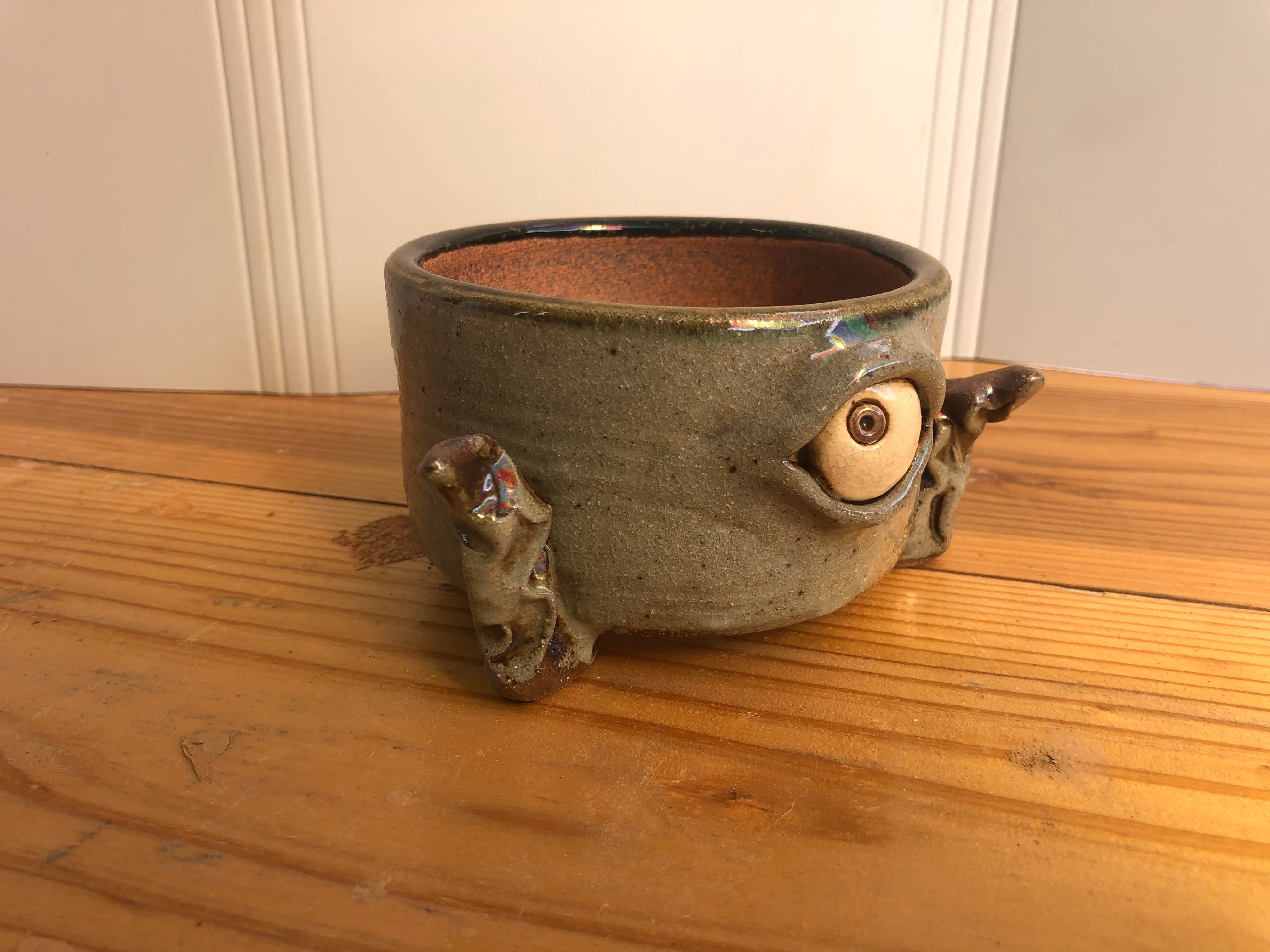 植物を植えると、ひとつ目が静かにこちらを見つめ、どこか不思議で愛嬌のある佇まいになります