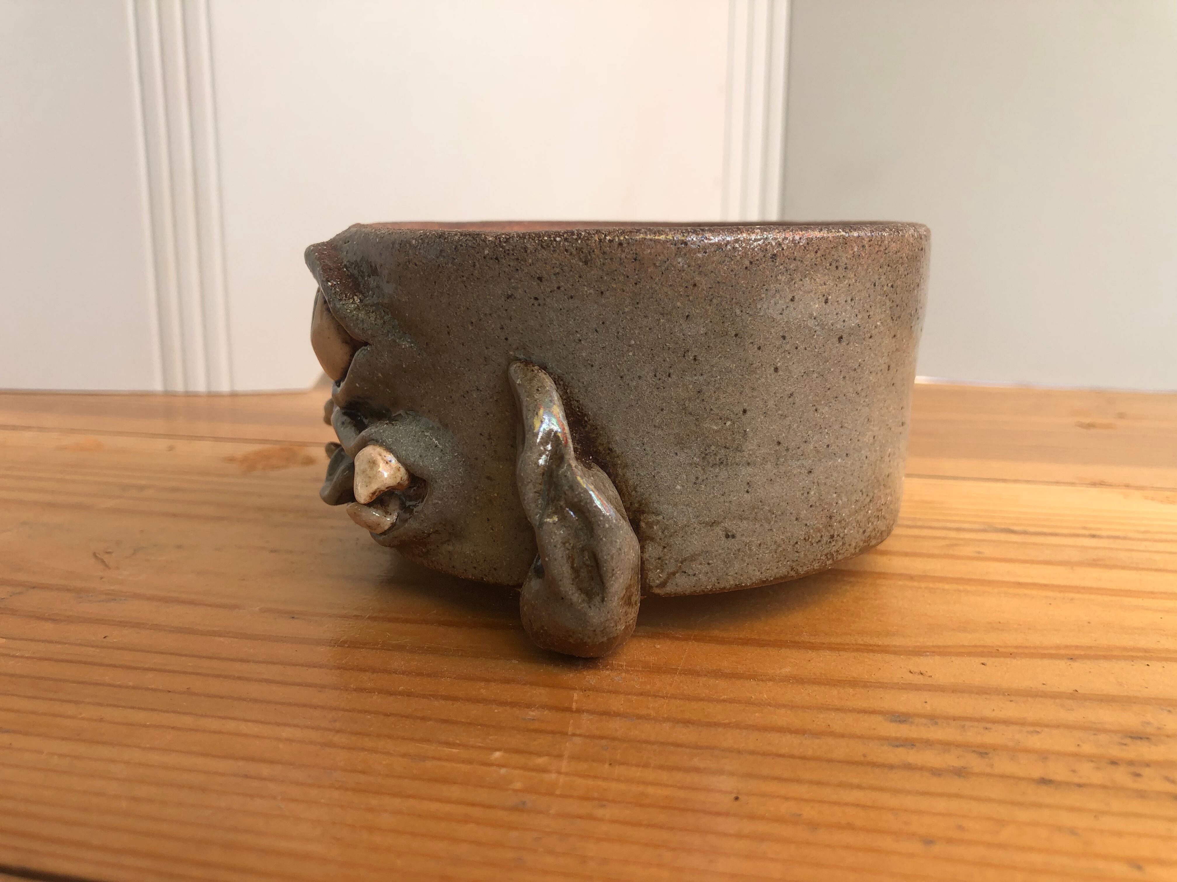 ロクロで成形した鉢に、手び練りで「ひとつ目」をあしらった一点物の作品です。