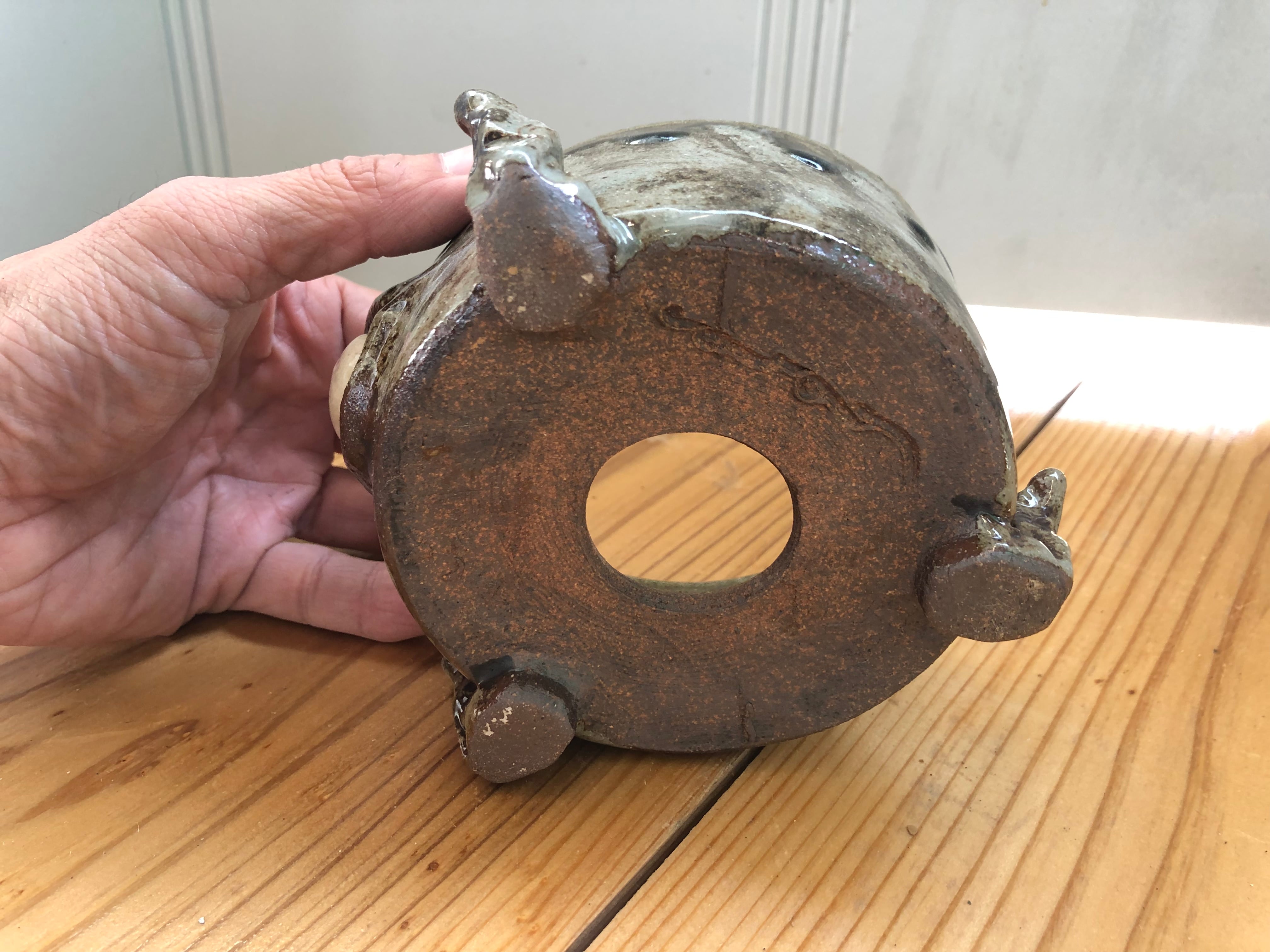 ロクロで成形した鉢に、手び練りで「ひとつ目」をあしらった一点物の作品です。